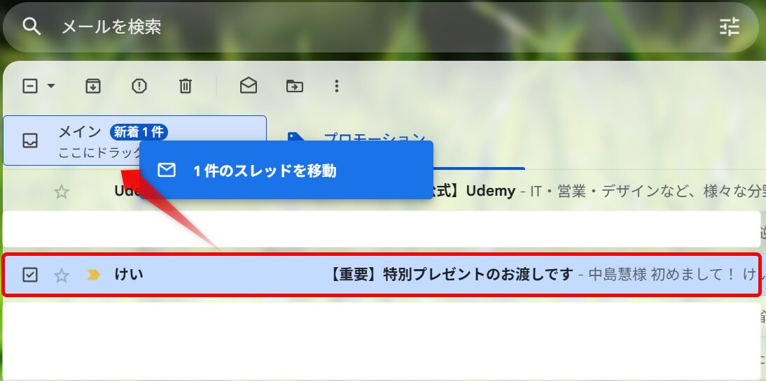 STEP2:メールをメインタブにドラッグ&ドロップ